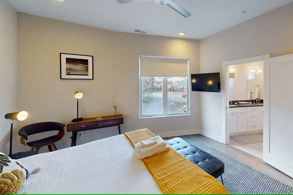 Discover contemporary living in the heart of the South Gulch neighborhood with this exceptional fully furnished modern condo. Offering all the flexibility you need with your lease terms. As little a 90 day rental options or longer 6/12 month lease options as well. Flooded with natural light, this west-facing residence boasts stunning wood floors, Brazilian Calacatta marble countertops, and high-end stainless steel appliances. Unique to this unit is a custom-built fireplace and entertainment center, setting it apart from the rest.