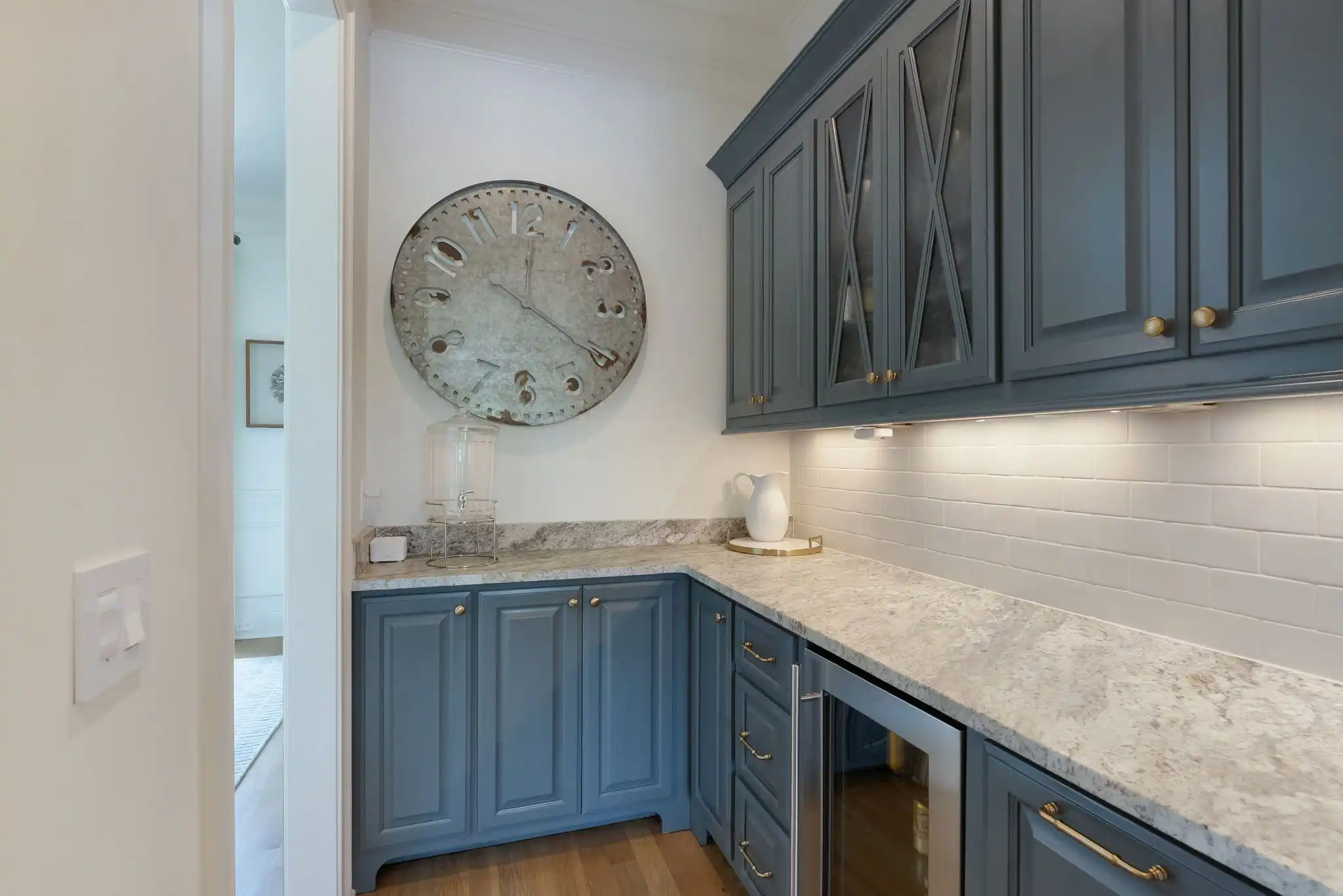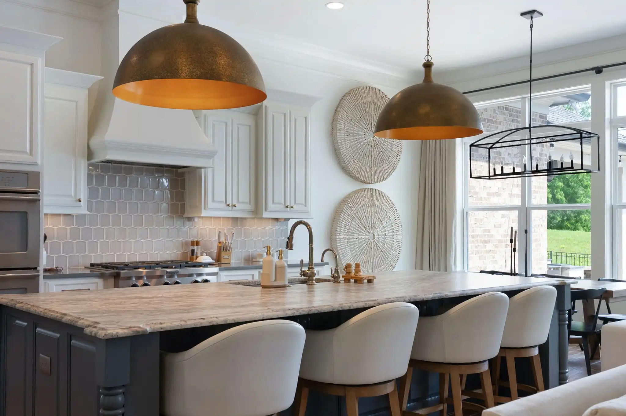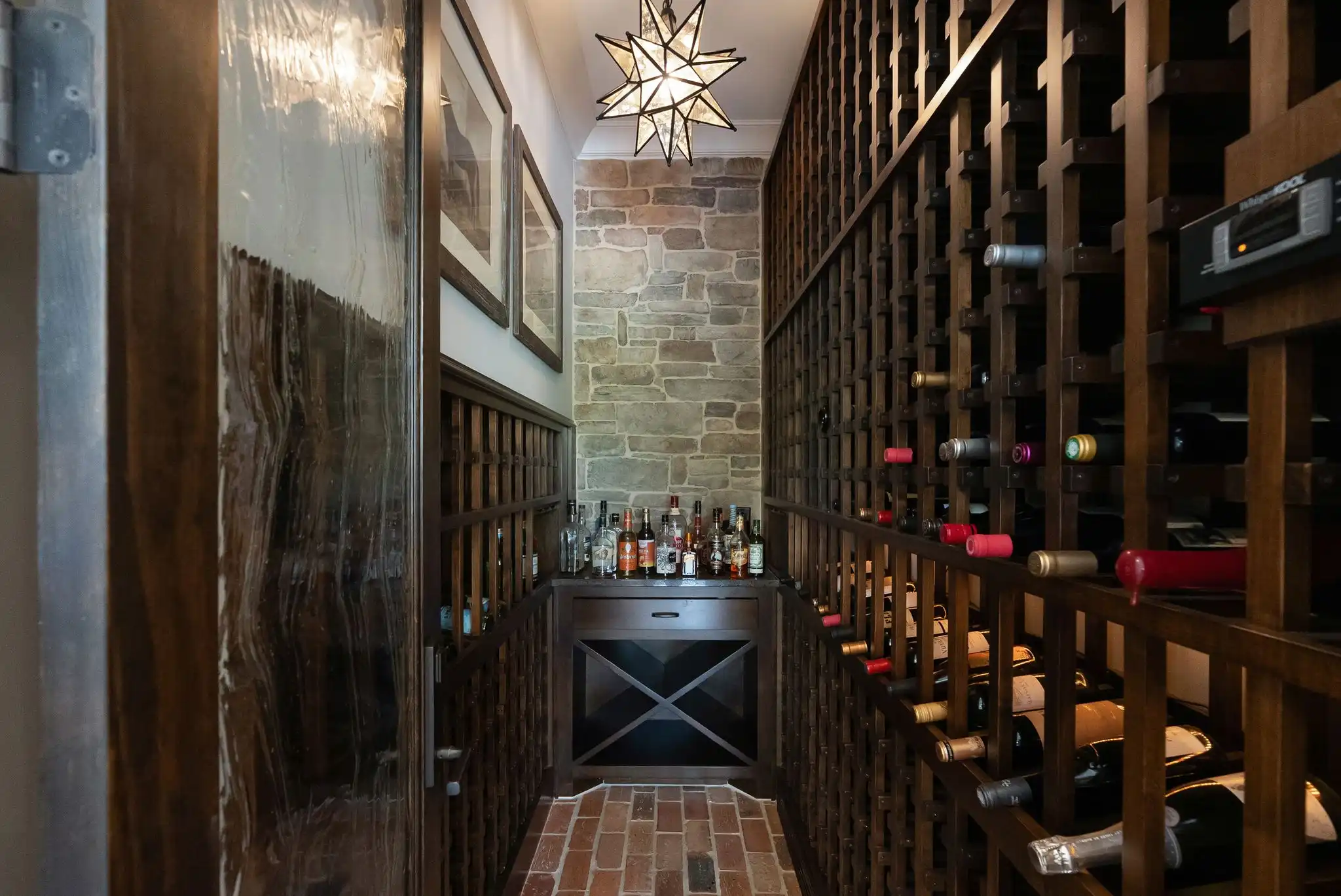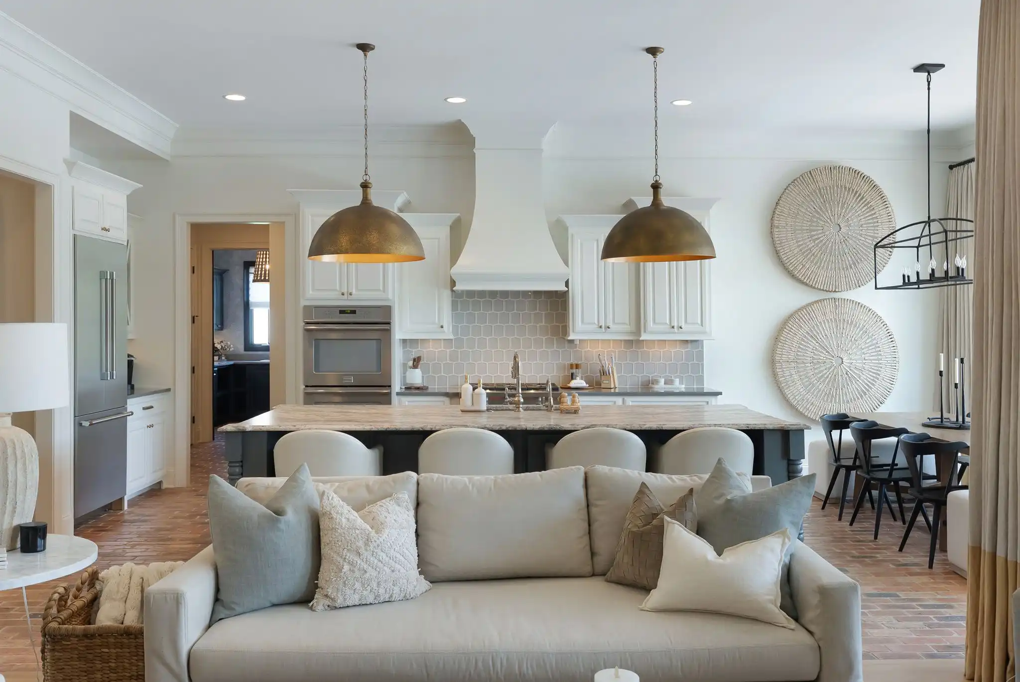 The kitchen is a true centerpiece—crafted for the entertainer or home chef alike—featuring double ovens, a six-burner gas range, oversized island, butler’s pantry, and a temperature-controlled 463-bottle wine cellar. Living and dining areas flow effortlessly, bathed in natural light and timeless character.